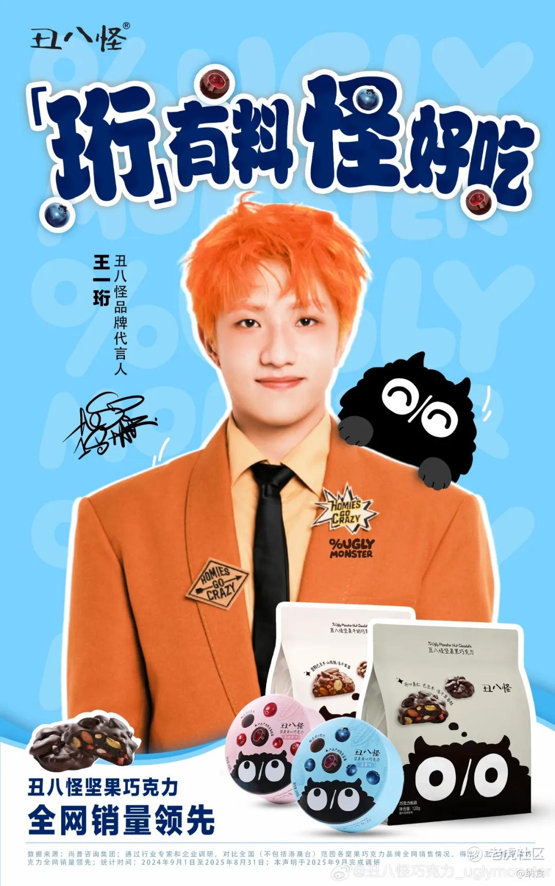 丑八怪以趣味化的包装设计、鲜明的品牌人格和富有温度的情感表达赢得年轻人青睐。而王一珩作为“十个勤天”中备受年轻人喜爱的成员,凭借其出众的音乐才华、阳光幽默的性格以及真诚接地气的形象,在年轻圈层中积累了深厚的粉丝基础与正向口碑。他的公众形象不仅充满活力与创造力,更体现出一种不刻意迎合、坚持自我的生活态度,这恰恰与丑八怪所倡导的“怪趣不乖”的品牌精神高度契合。