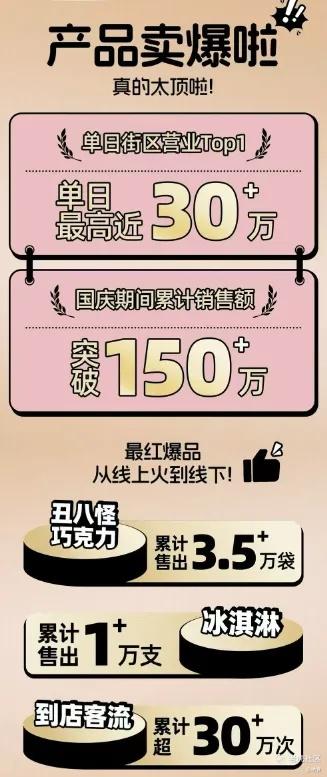 众多创新产品也陈列其中:如坚果巧克力系列,以醇厚牛奶巧包裹整颗巴旦木、山核桃碎与冻干草莓粒,在满足品质追求的同时激发味觉惊喜;国内首创的浆果夹心巧克力则巧妙结合蓝莓与蔓越莓果芯,一口咬下既有可可的浓郁回甘,又有浆果的清新微酸,形成强烈的记忆点;同步上线的敲击巧克力、巧克力冰淇淋、冷萃可可等产品形态进一步拓宽消费边界,充分响应年轻人对新鲜感与个性化的双重需求。数据显示,丑八怪线下快闪店创下单日营业额超30万元的佳绩,稳居街区商业榜首,国庆期间总销售额突破150万元。