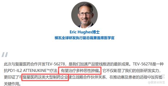 国际化方面,与国际药企TEVA的合作备受业内关注。双方联合开发创新疗法TEV-56278,这一疗法是一种结合抗PD1抗体与IL2的ATTENUKINE融合蛋白,代表了在癌症治疗领域的一项突破性进展。这种合作模式的价值不仅让复星能够跻身癌症一线管线行列,降低研发风险和成本,更重要的是使公司得以接入全球创新网络,分享最前沿的技术进展。