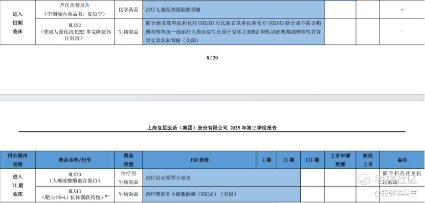 客观地说,尽管创新药收入占总营收比重较头部药企仍有提升空间,但其增长趋势与8月底股权激励方案中设定的"复合年均增长率约20%"目标高度契合,创新药品收入已逐步成长为公司重要增长引擎。这一增长态势的背后,是公司创新药产品组合的持续丰富和商业化能力的系统提升。不仅如此,复星医药后续仍有多个创新管线处于临床III期及上市受理阶段,创新药端的持续爆发确定性很强。
