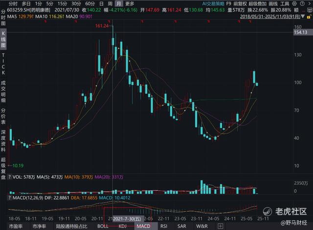2025年以来在业绩的提振下,药明康德的股价也整体呈现上升趋势。
