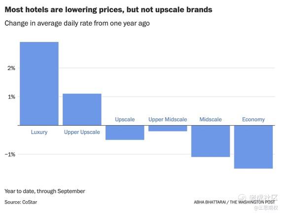 图:美国酒店业只有最豪华的酒店还在涨价,这似乎也是一个旁证