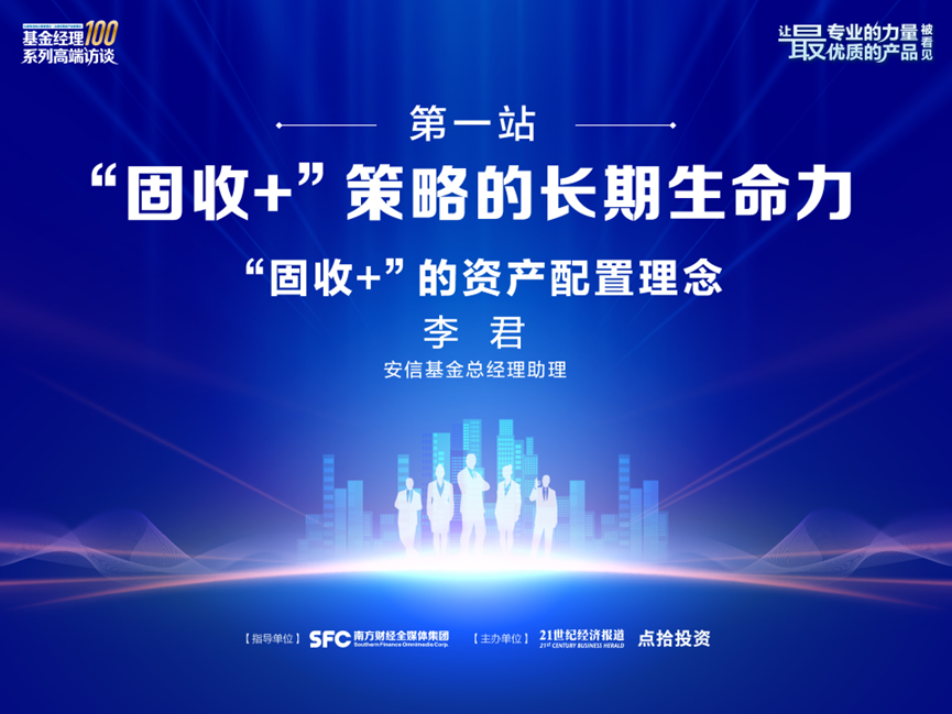 导读:10月22日,点拾投资举办了【“固收+”策略长期生命力】线下活动。本次活动,我们邀请到了多位业内“固收+”大咖来到现场分享。下面是安信基金总经理助理李君,对于“固收+”的资产配置理念的主题发言,干货满满。