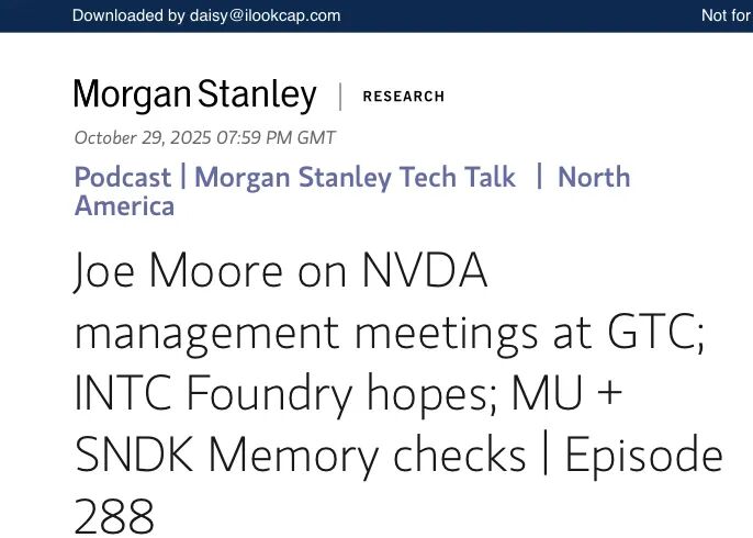 Morgan Stanley发布重磅研报,资深分析师Joe Moore深度复盘NVIDIA在GTC大会上的管理层会议,首次曝光AI市场爆发如何助推NVIDIA迈向$5000亿估值关键细节,并分析了Intel代工业务的潜力与风险。