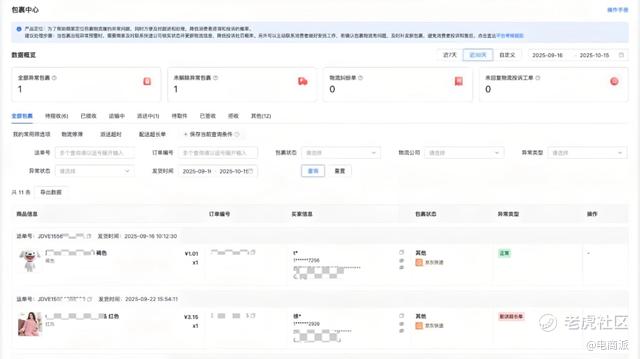 注意到这一点的京东,为了解决商家在物流履约环节面临的异常问题,在今年11.11期间上线了“包裹中心”功能。