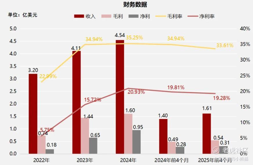 净利润分别约为0.18亿美元、0.65亿美元、0.95亿美元、0.28亿美元及0.31亿美元,年复合增长率为127.42%;
