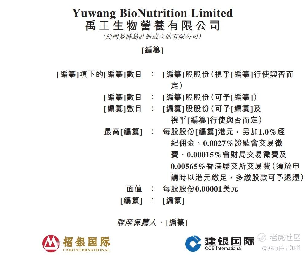 据港交所10月20日披露,禹王生物营养有限公司向港交所主板提交上市申请书,招银国际、建银国际为联席保荐人。公司于11月3日进一步委任中泰国际证券有限公司为整体协调人。 $禹王生物营养有限公司(临时代码)(91131)$