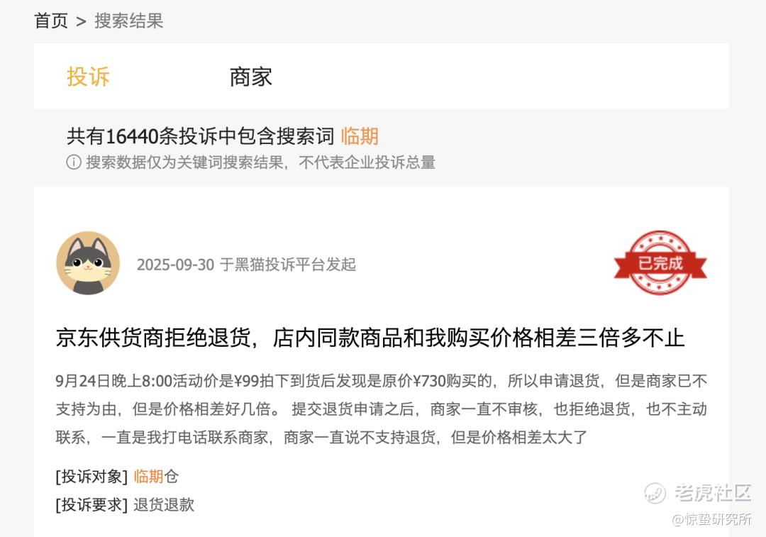 在这一过程中,信誉与品质保障成为关键。消费者会被“临期专卖”吸引,是因为看中了“正品低价+平台自营”所构建的信任背书。然而,如果消费者在平台遭遇价格差异不明显、甚至买到假货等问题,而平台又未能严格把控产品保障用户体验,本质上也只是在消耗自身长期积累的信誉资产。