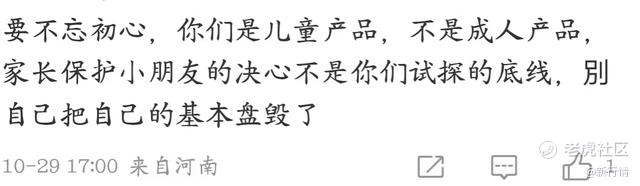 对此,网友们纷纷表示,“要不忘初心,你们是儿童产品,不是成人产品家长保护小朋友的决心不是你们试探的底线,别自己把自己的基本盘毁了。”“你们做的是儿童教育,监管上还是提高提高吧。”“宝宝巴士在每个儿童和每个家庭的知名度普及度,你们自己心里清楚。请守护好孩子们的成长!”
