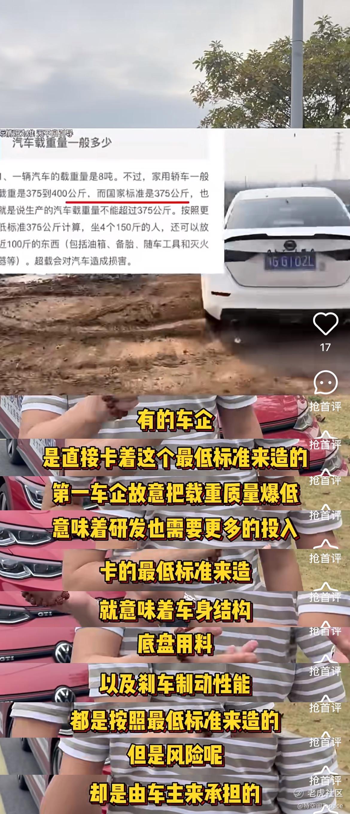 据了解,依据当前国标标准,五座轿车/SUV的承载质量及格线为375公斤(75*5)。