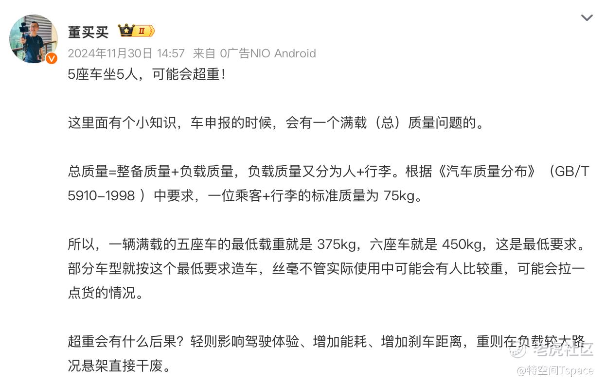 买车时,什么最容易被忽视,但其实很重要?博主@车潮的老潮 提到有一个关键指标,直接关系着全家安全——那就是车辆的“满载质量”和“有效载荷”。
