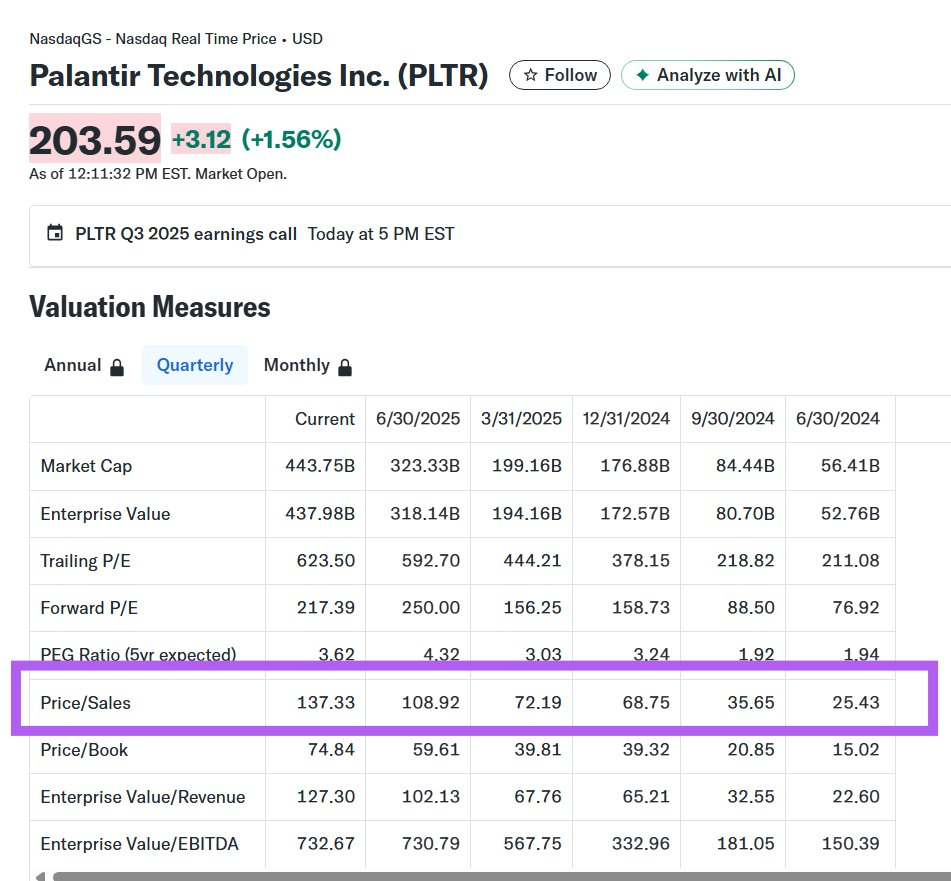 $Palantir Technologies Inc.(PLTR)$ 的2025年第三季度财报展现出强劲增长势头,整体业绩远超市场预期,我们判断为“优异”级别。营收同比飙升63%至11.8亿美元,调整后每股收益0.21美元,均大幅超出分析师共识;关键亮点在于美国商业营收暴增121%,得益于AI平台AIP的快速渗透和大型交易签约。然而,潜在瑕疵在于尽管基本面强劲,盘后巨震,从+7%到-4%。,这或许反映市场对高估值(当前PS超138倍)的担忧,以及“买预期卖事实”的交易情绪。