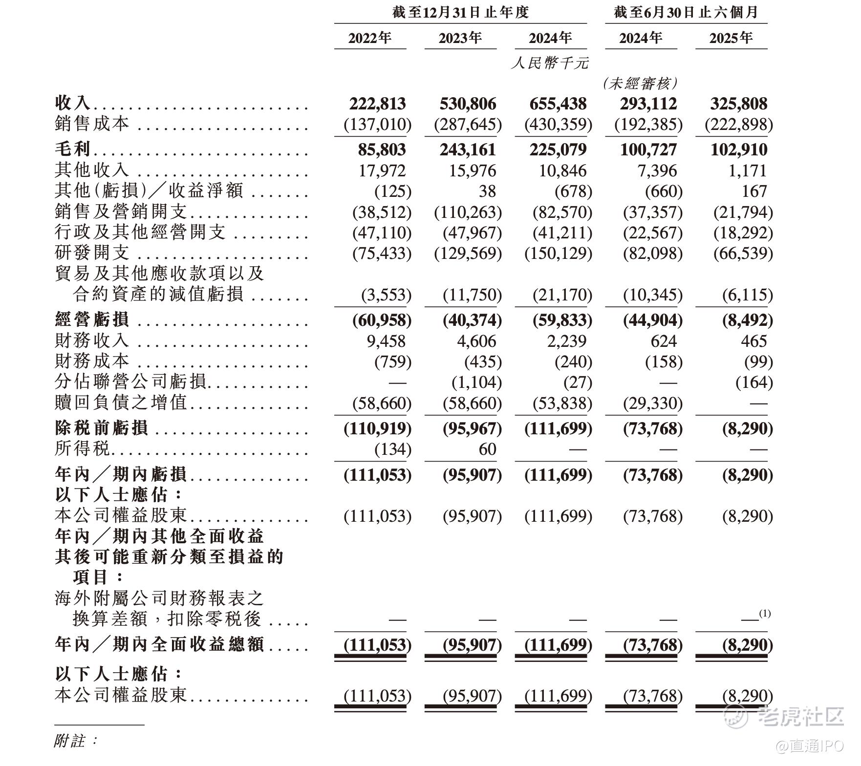 2022-2024年及今年上半年(下称:报告期),硅基智能的收入分别约2.23亿、5.31亿、6.55亿、3.26亿元;毛利分别约8580.3万、2.43亿、2.25亿、1.03亿元,毛利率分别为38.5%、45.8%、34.3%、31.6%;净亏损分别约1.11亿、9590.7万、1.12亿、829.0万元。