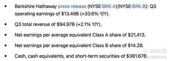 伯克希尔哈撒韦的财报发布周期较为特殊,几乎始终在周末公布。周六,公司披露了2024财年第三季度的以下业绩数据: