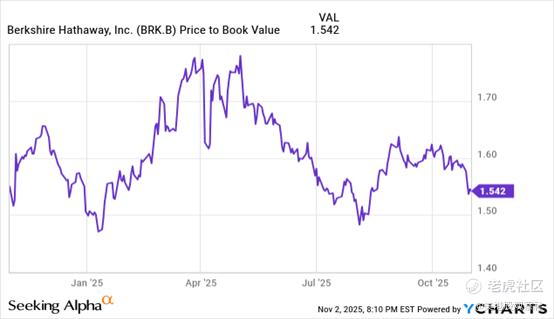 不过需要注意的是,若将时间维度拉长至一年以上,过去伯克希尔哈撒韦的市净率常低于1.5倍。此外,巴菲特在第三季度未进行任何股票回购——这可能表明,他认为当前BRK并非极具价值的投资标的。