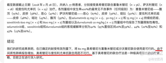 然后我们看TATTON,阿斯利康做的一项临床Ib期试验,这项临床Ib期试验中得到了明确的结论,由于ILD报告增加,度伐利尤单抗不能喝奥希替尼联用。