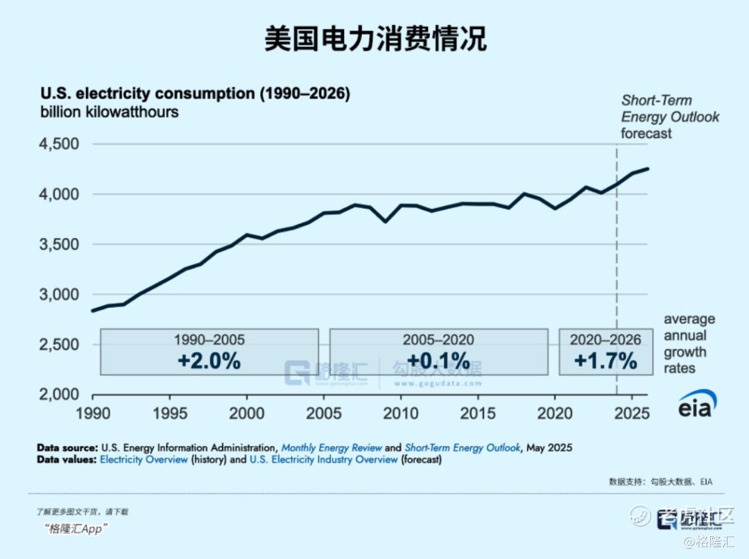 美国缺电的核心因素源自AI算力爆发,当数据中心负荷快速增长,开始推动北美电力需求进入新一轮增长周期。