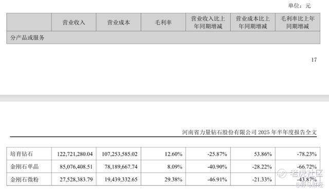 根据力量钻石2025年半年报数据,培育钻石营收占总营收的半壁江山,占比大概在50.82%。培育钻石营收约1.23亿元,毛利率12.6%,营收、毛利率分别同比减少25.87%、78.23%;金刚石单晶营收约8507.64万元,毛利率8.09%,两项指标分别同比减少40.9%、66.72%;金刚石微粉营收约2752.84万元,毛利率29.38%,两项指标分别同比减少46.91%、43.87%。
