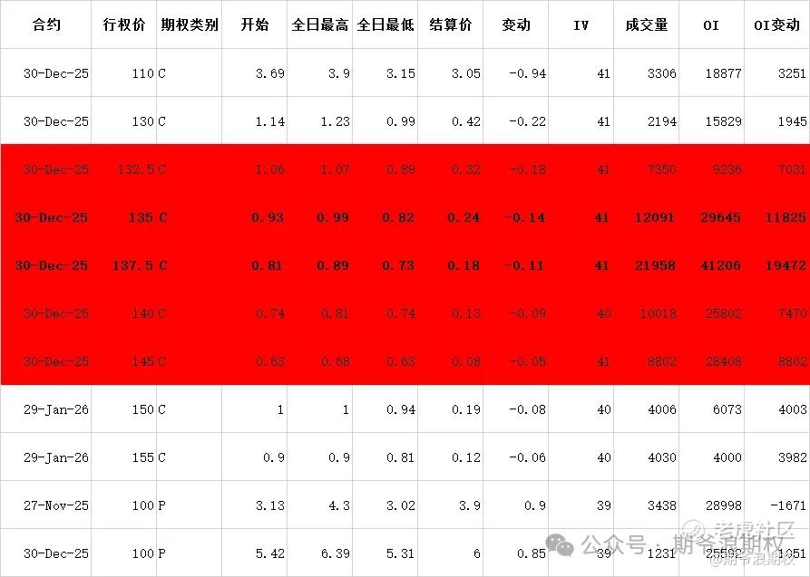 (3)美团:11月最大持仓范围100-130,窝轮牛熊街货分布90-110,今收99.9,下跌2.35%。期权盘路变化超过1000张的仓位如下,红色是增仓较大的,跟昨天几乎一样,全部是12月的虚值购,而且增量也非常大,这是连续第二天主动进攻做多美团的信号!美团这个渣渣很像是马上就要翻身了,11月要发第三季度财报可能会有大的突破?这些大仓位背后的大佬们可能是这么认为的,不过之前也有虚晃的时候,谨慎参考!