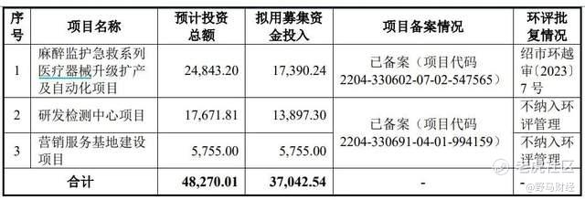 本次IPO,海圣医疗拟募资3.7亿元,将分别投入麻醉监护急救系列医疗器械升级扩产及自动化项目、研发检测中心项目和营销服务基地建设项目三大项。
