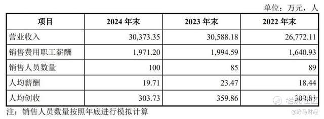 值得一提的是,该公司这三年的销售人员数量分别为89人、85人和100人,人均薪酬分别为18.44万元、23.47万元和19.71万元,人均创收分别为300.81万元、359.86万元和303.73万元。