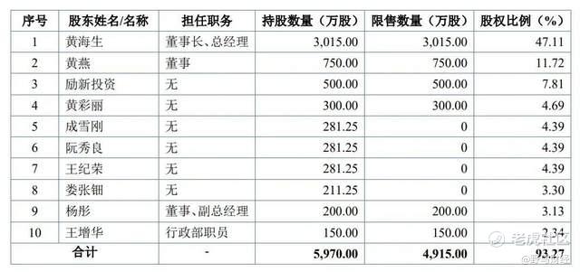 截至目前,黄燕、黄彩丽和王增华分别直接持有海圣医疗11.72%、4.69%和2.34%的股份,合计持股18.75%。也就是说,黄氏家族合计持有海圣医疗73.67%的股份。
