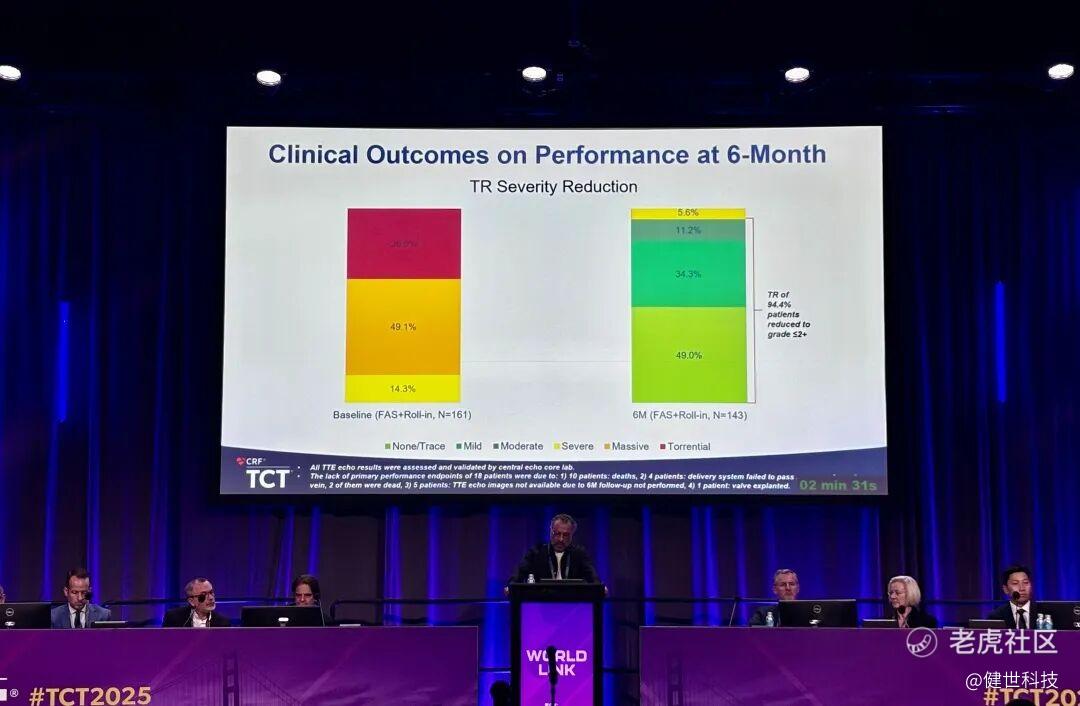 当地时间10月25日下午,在TCT WorldLink Forum 5: Best Global Research in Structural Heart Interventions - In Partnership with the Structural Heart Journal章节,法国波尔多大学医学院Thomas Modine教授首次分享了LuX-Valve Plus(经颈静脉三尖瓣置换术,TTVR)TRINITY研究的6个月随访结果。数据表明,LuX-Valve Plus在重度三尖瓣反流及外科高危患者中具有良好的安全性和有效性,心功能显著改善,并发症发生率低,显示出可靠的临床价值。