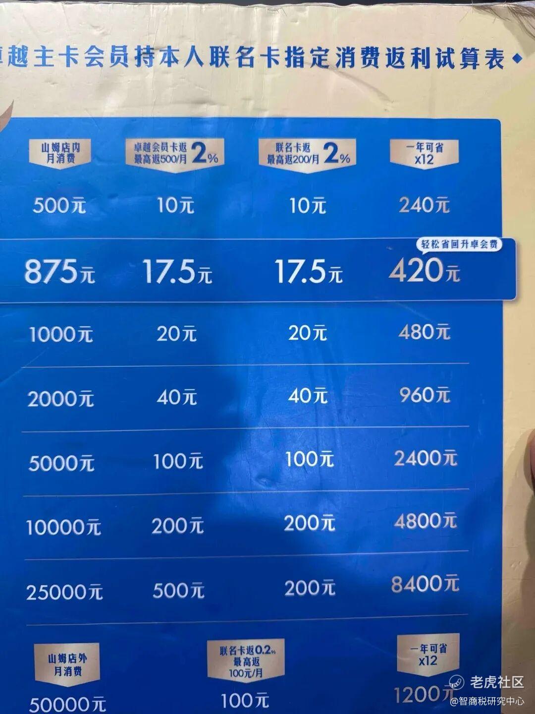 这是因为,山姆普通会员年费260元,卓越卡会员年费680元,民生山姆联名信用卡主,每月在山姆消费至少875元,才能让这420元的差价回本。