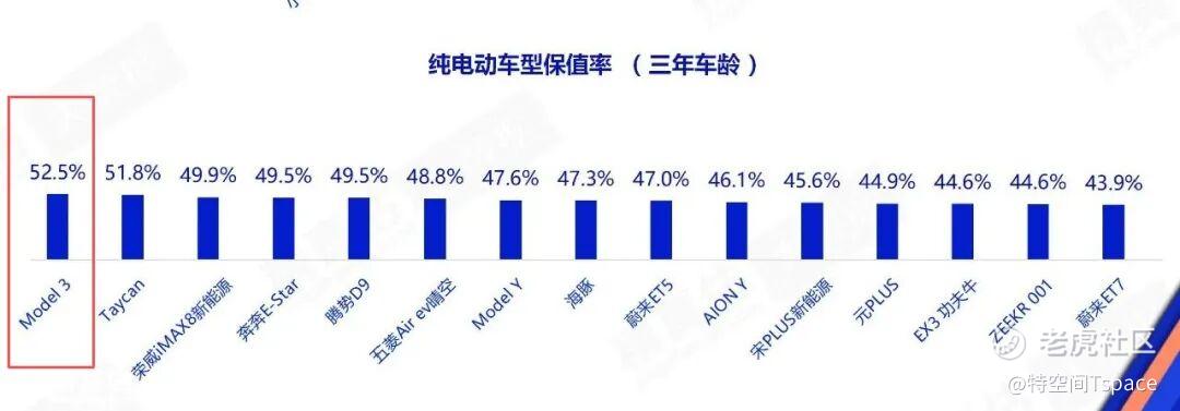 近日,中国汽车流通协会和精真估联合发布了《2025年10月中国汽车保值率研究报告》。其中,Model 3在纯电动车型保值率(三年车龄)排名中获得第一名。
