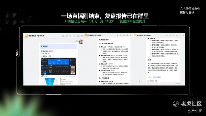 前者如今通过AI表格可以管理公司数千个达人的所有内容发布节奏,同时构建从达人管理到商品销售再到数据分析的全链路AI闭环,后者则是通过基于AI强化自身的客服闭环,通过提高客服回复准确率和及时率进一步提升线索转化ROI,以及更通过AI陪练提高团队人才能力。