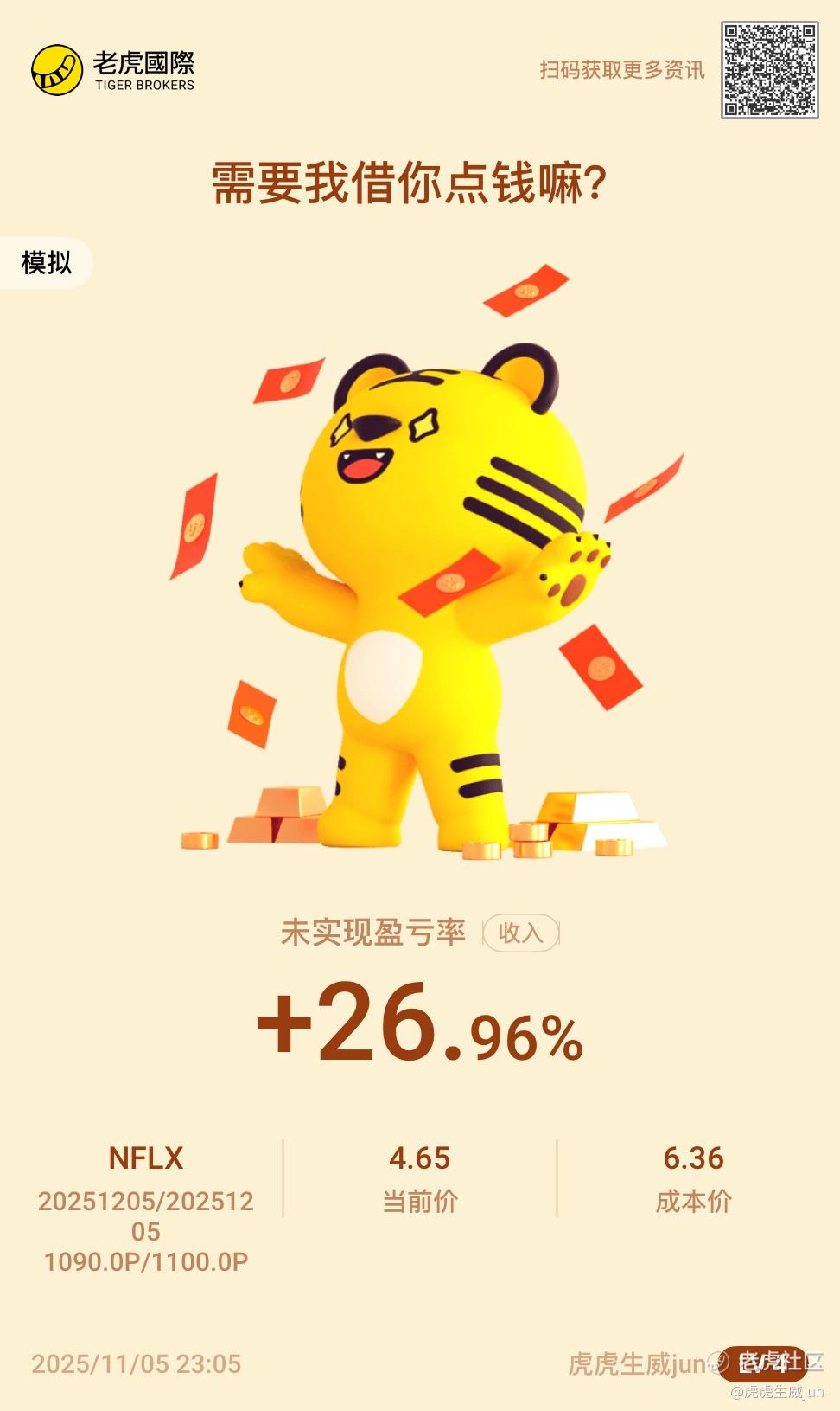$奈飞 垂直价差 251205 PUT 1090.0/PUT 1100.0$