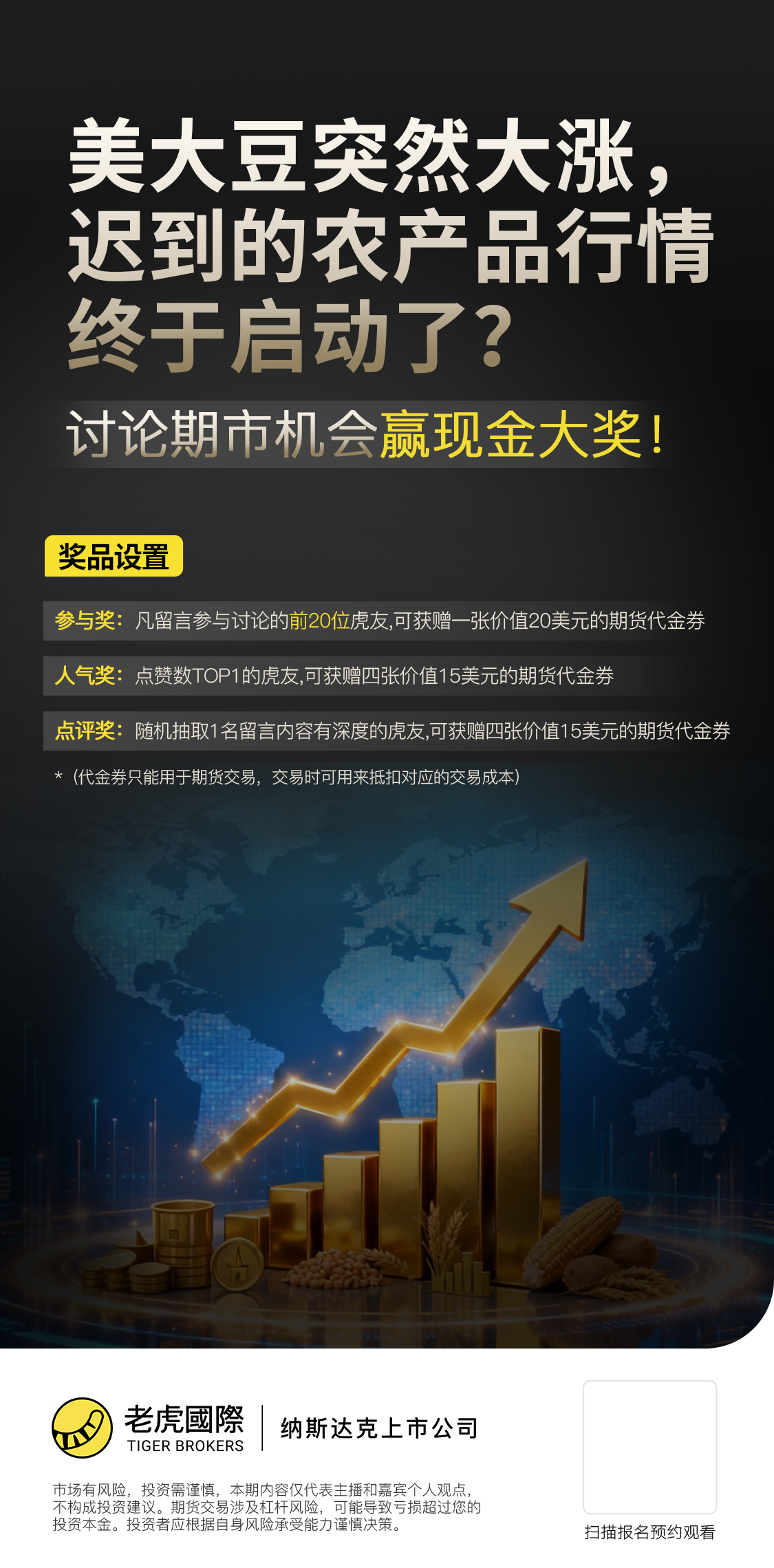 - 参与奖:凡留言参与讨论的前20位虎友,可获增一张价值20美元的期货代金券。