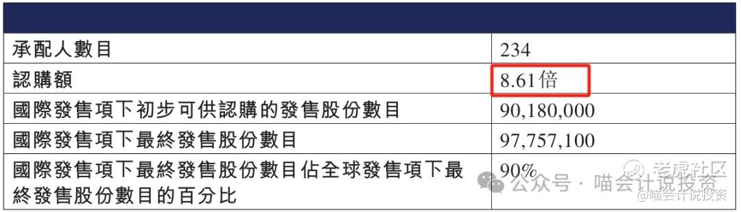 国际发售8.61倍,234名投资者,别看10倍都不到,这可是130多亿的90%的货量,足足1000多亿啊。