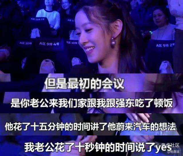 京东老板娘章泽天在蔚来汽车新品发布会上还曾提到过这件事,称:“最初的会议是李斌来我们家,跟我跟强东吃了顿饭。他花了15分钟讲他对蔚来汽车的想法,我老公花了10秒说yes。”