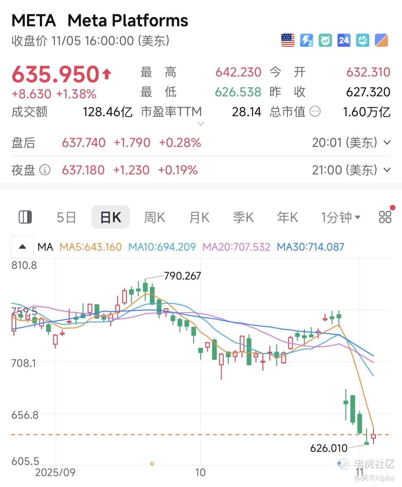 $Meta Platforms (META.US)$ 上扬1.38%;