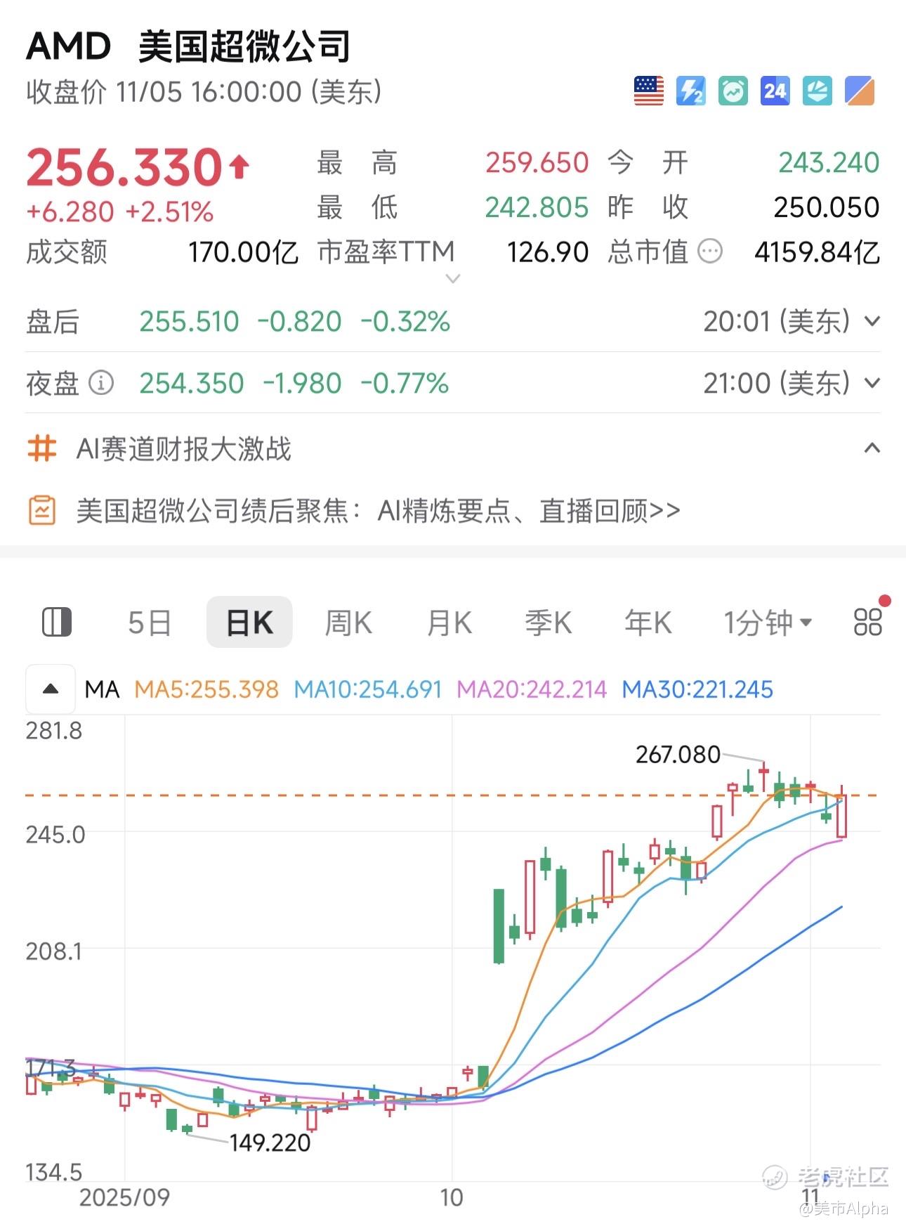 $美国超微公司 (AMD.US)$ 上涨2.51%,OpenAI已成为AMD的合作伙伴。