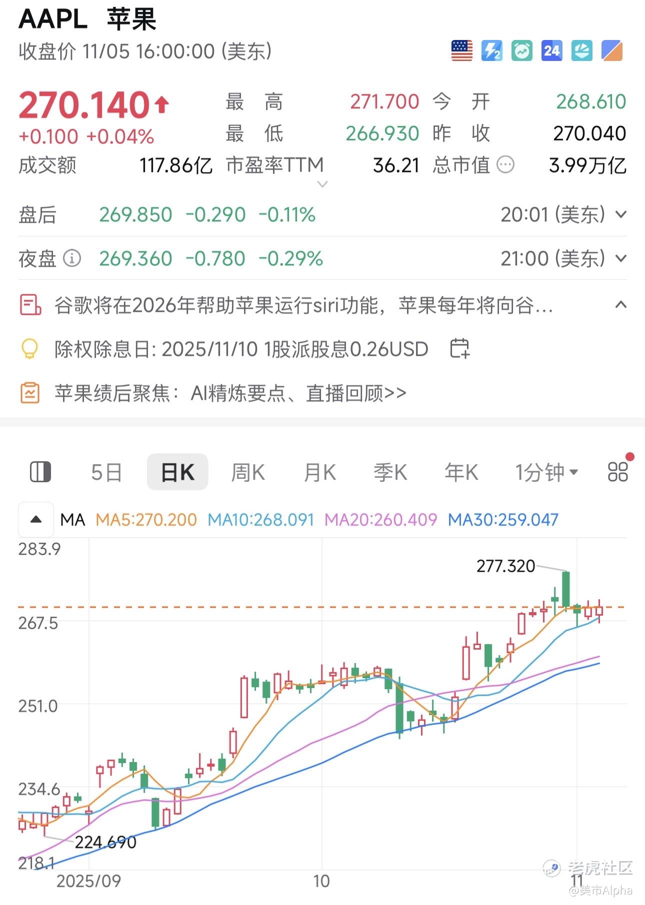 科技板块领涨大盘, $苹果 (AAPL.US)$ 上涨1.4%,同时苹果将在2026年全面升级AI智能助手siri,每年向谷歌支付大约10亿美元的费用,苹果会将谷歌视为幕后的技术供应商