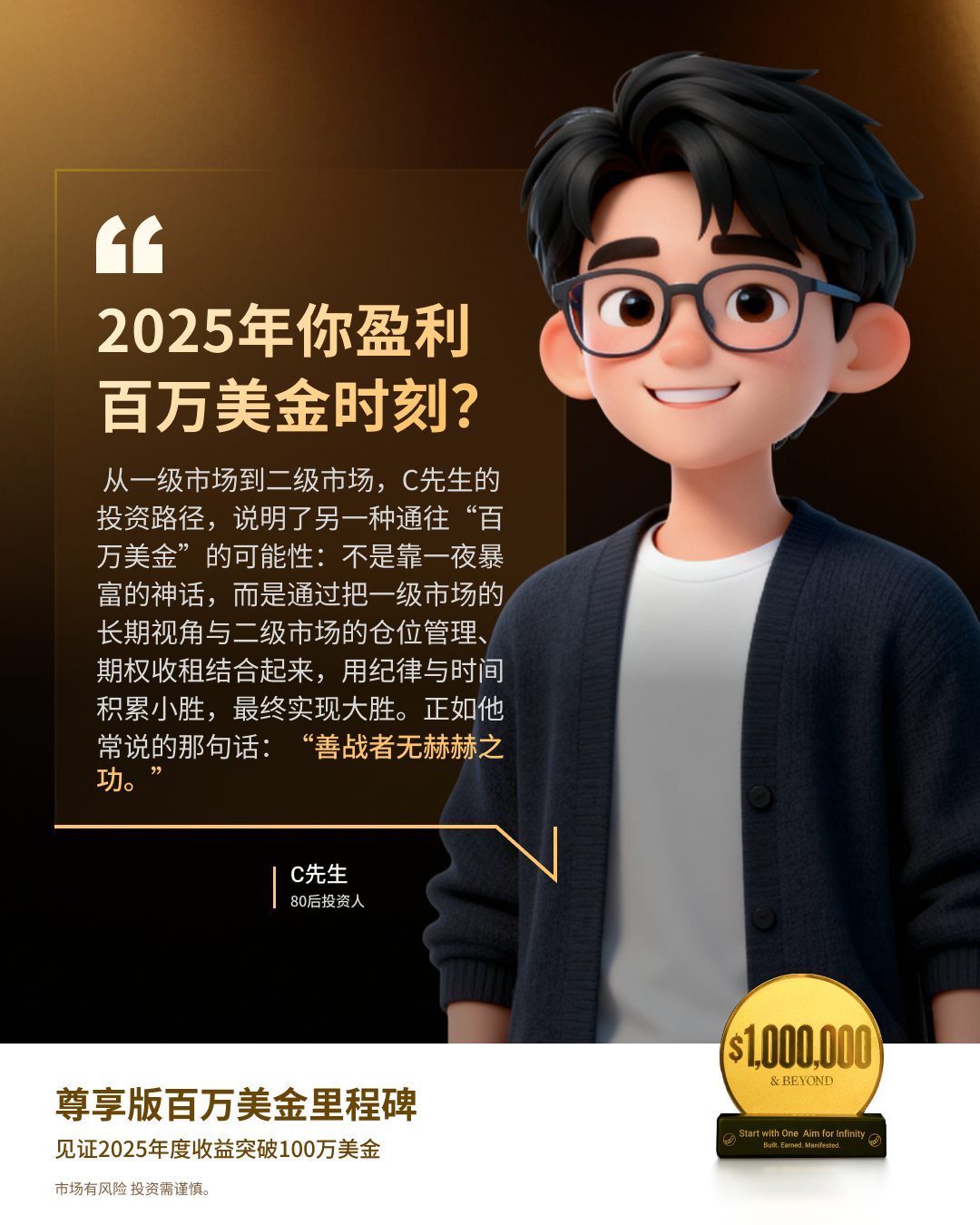 C先生的路径说明了另一种通往“百万美金”的可能性:不是靠一夜暴富的神话,而是把职业方法论(一级市场的长期视角)和二级市场的操作手段(仓位管理、期权收租)结合起来,通过资金体量、纪律与时间的复利,稳步增长。对于普通投资者,最实在的启示或许是:先把风险管理做好,不追求看起来漂亮的胜利,让小胜不断堆积,长期之下,大胜自会到来。