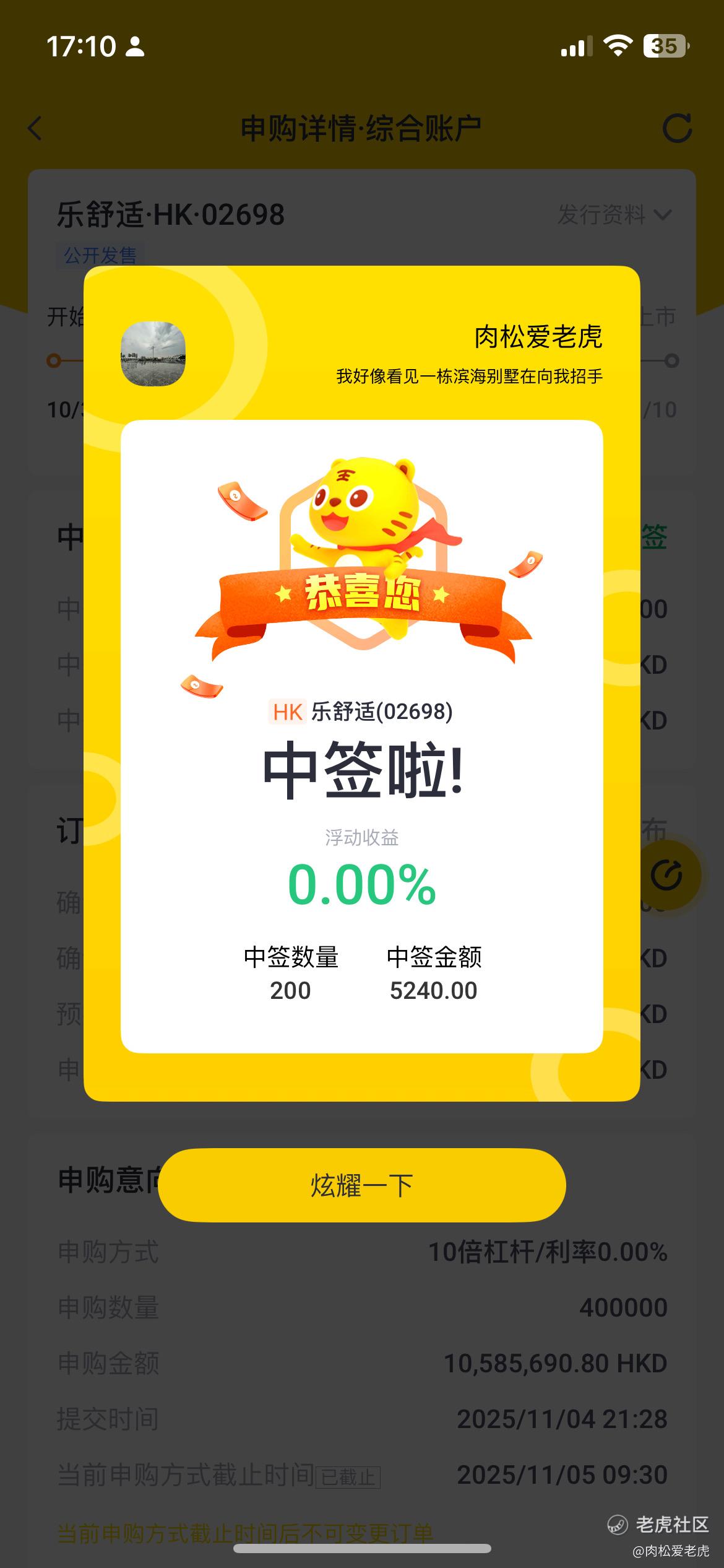 $乐舒适(02698)$ 打了1000w多,才1手?