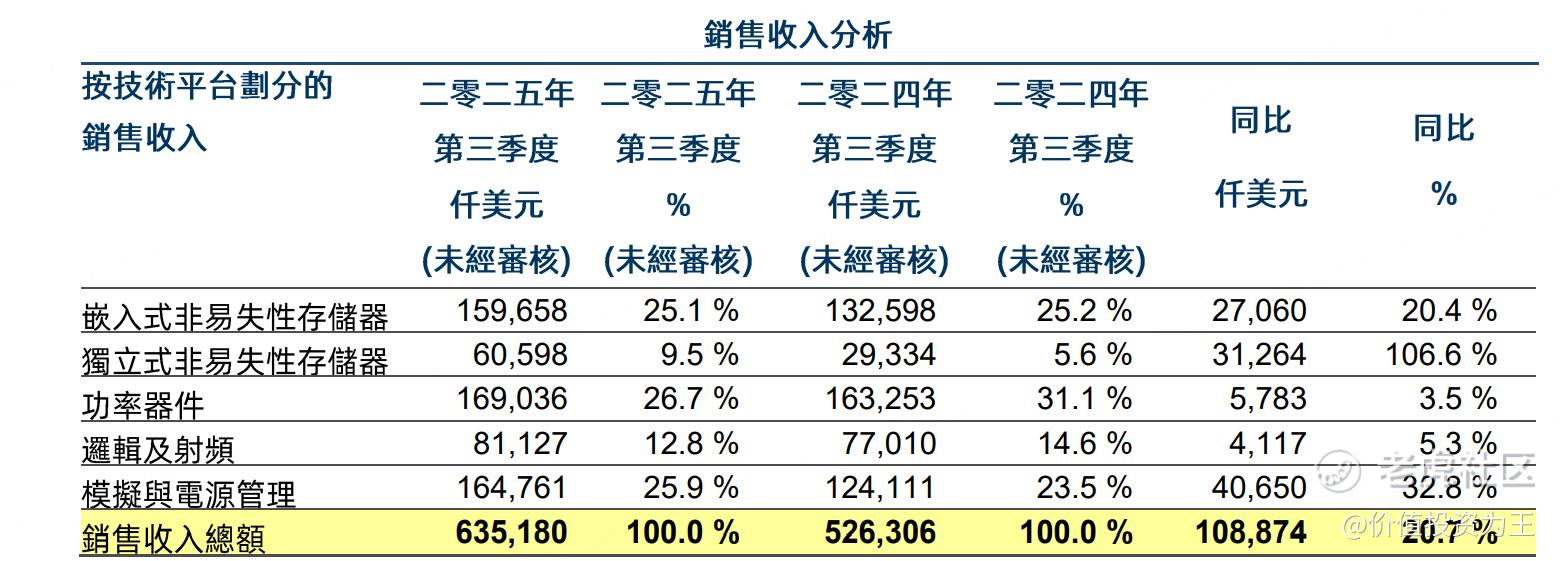 分终端来看,三季度华虹营收增长的动力主要是独立式非易失性存储器,同比大增106.6%,闪存需求增长较快: