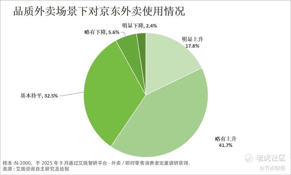 当行业补贴潮水退去,用户结构正加速分化。艾瑞咨询的数据显示,价格敏感型用户占49.3%,而价值认同型用户占26.8%。竞争的决胜点,在于牢牢抓住后者——他们不只追求“吃得便宜”,更追求“吃得安心”。如近六成(59.5%)用户计划增加在京东品质外卖的消费频率,这并非短暂的流量红利,而是用户认同的红利。