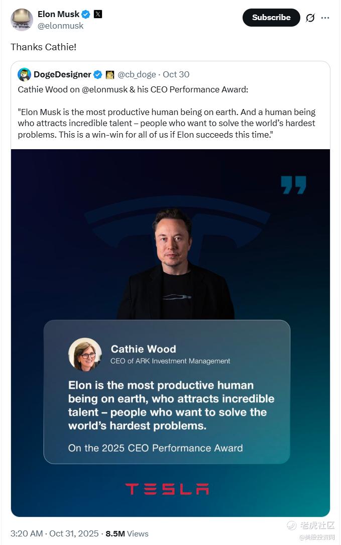 在股东投票前夕,市场似乎在押注该方案将通过,这将巩固马斯克对公司的控制权,并强化他对特斯拉未来转型的激励,从而提振了投资者对公司长期高增长潜力的信心。