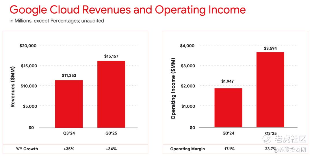历史数据显示,积压订单一直占谷歌云收入的45-50%左右,其余部分由按需业务驱动。这意味着谷歌云的按需业务在2023年和2024年分别实现了29%和37%的同比增长,2025年至今增速约为25%。