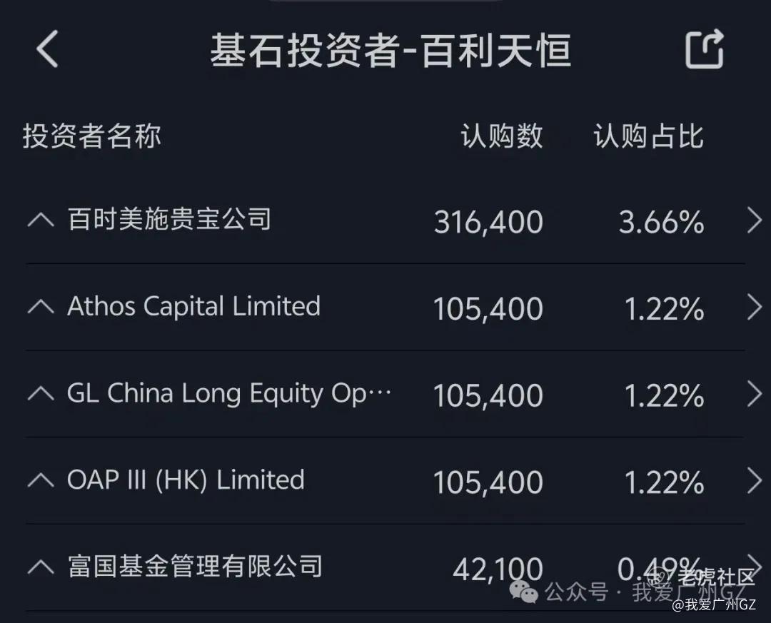 2、基石:占比不高,只有7.8%,以产业投资和自己的原投资人百时美施贵宝为主。