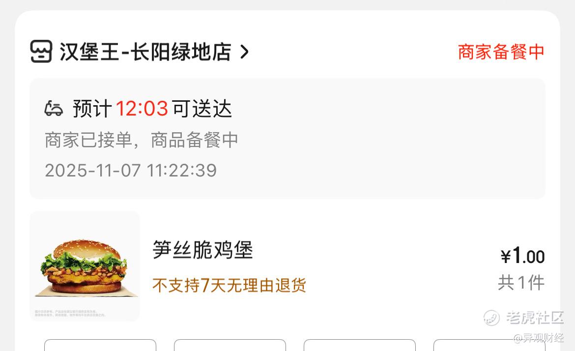 最近京东外卖又上大力度补贴了,东哥请吃外卖,1分钱的外卖抢不到,1元的汉堡也很香嘛。淘宝闪购的力度也不小,早晨有朋友13元喝到了星巴克$京东集团-SW(09618)$ $阿里巴巴-W(09988)$