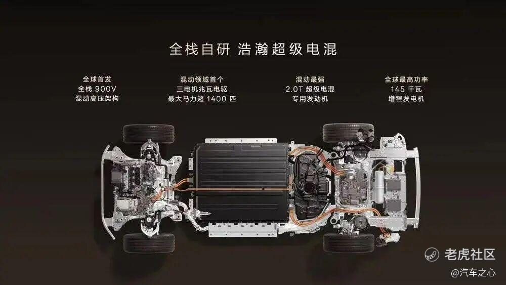 性能:极氪 9X 搭载全球首款全栈 900V 高压混动架构,智己 LS9 还发布三电机四驱版本,百公里提速 3 秒级。