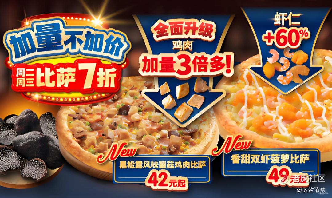 随着80后、90后渐渐成为消费主力,他们更愿意尝试新事物,对西式餐饮的接受度更高,而比萨作为一种分享型、社交型食物,非常适合朋友聚会、办公室下午茶等场景。同时,比萨丰富的馅料、拉丝的芝士给消费者带来了强烈的视觉冲击和满足感,被认为是“物有所值”的一餐。