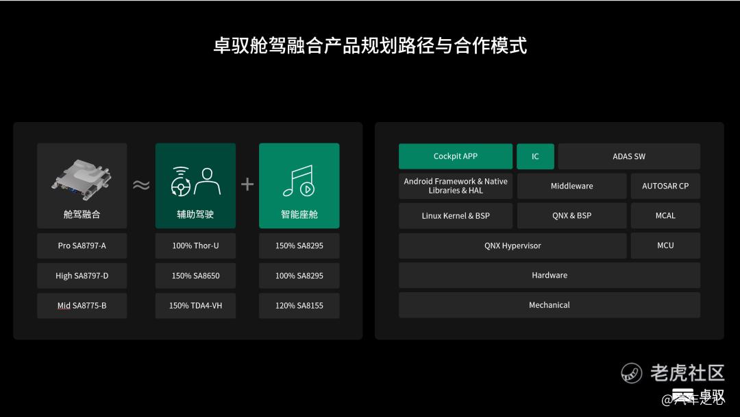 典型如舱驾一体方案的底层硬件和基础软件,与卓驭去年年底量产的 8650 方案,有很多复用之处。