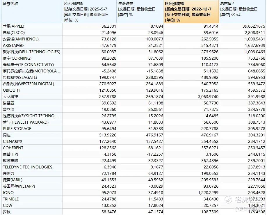 当前看到,大体上3年涨幅、今年涨幅及半年涨幅,衡量了这些股票是从chatgpt开启的浪潮以来的先涨、后涨顺序和强度。事实上像存储巨头们的后涨属性明显,但是总涨幅实际上也非常不错。