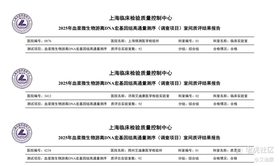 ▲艾迪康旗下三家实验室高分通过2025年血浆微生物cfDNAmNGS室间质评